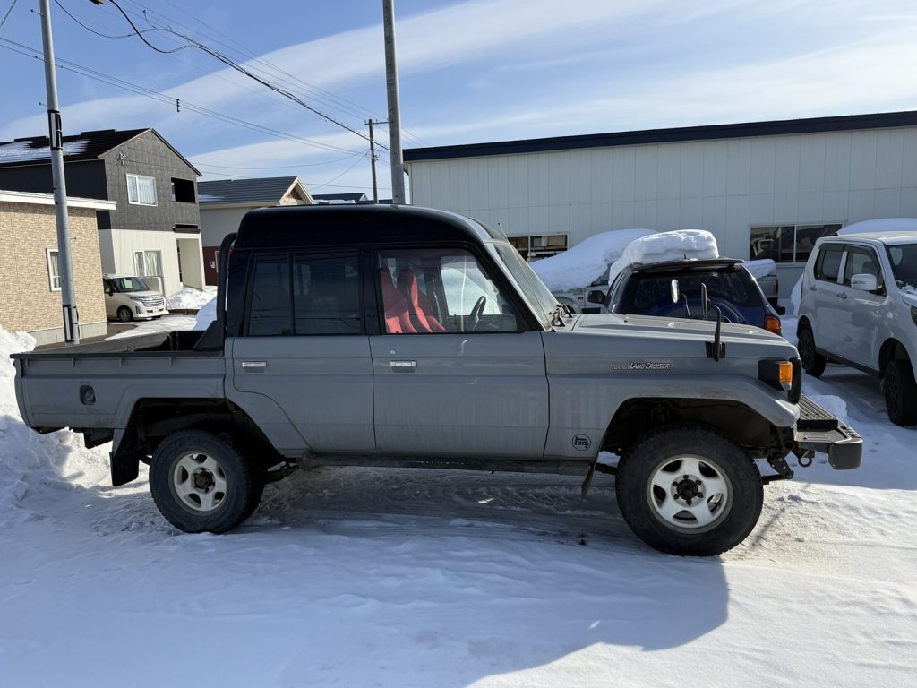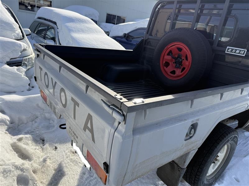 本製品は、消防車をベースとした車両に合わせてワンオフで製作したステンレスマフラーです。ベース車両が消防車であるため、通常のランドクルーザー77と比較してホイールベースが延長されており、その寸法に合わせてフロントパイプからテールエンドまでを専用設計で製作しました。